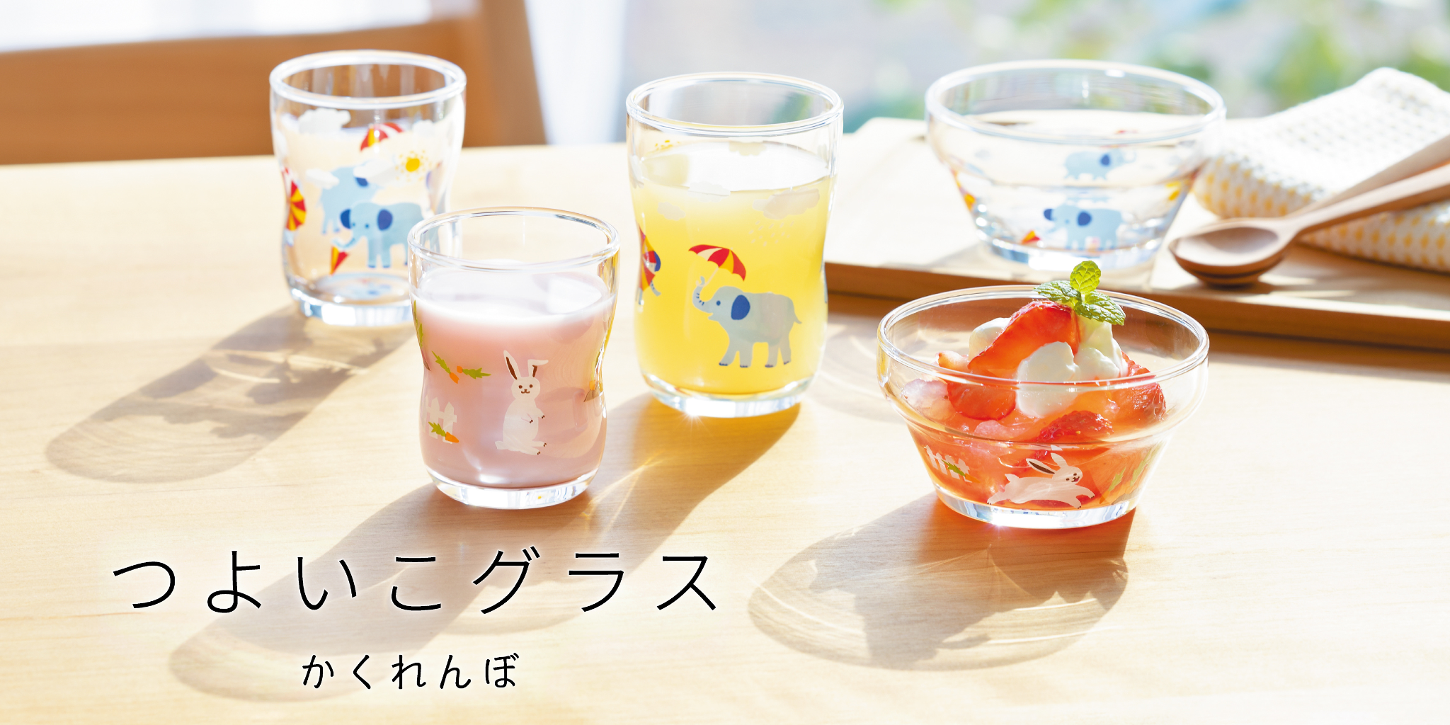 “つよいこグラス”は、割れにくく、毎日の食卓を安心で包みます。