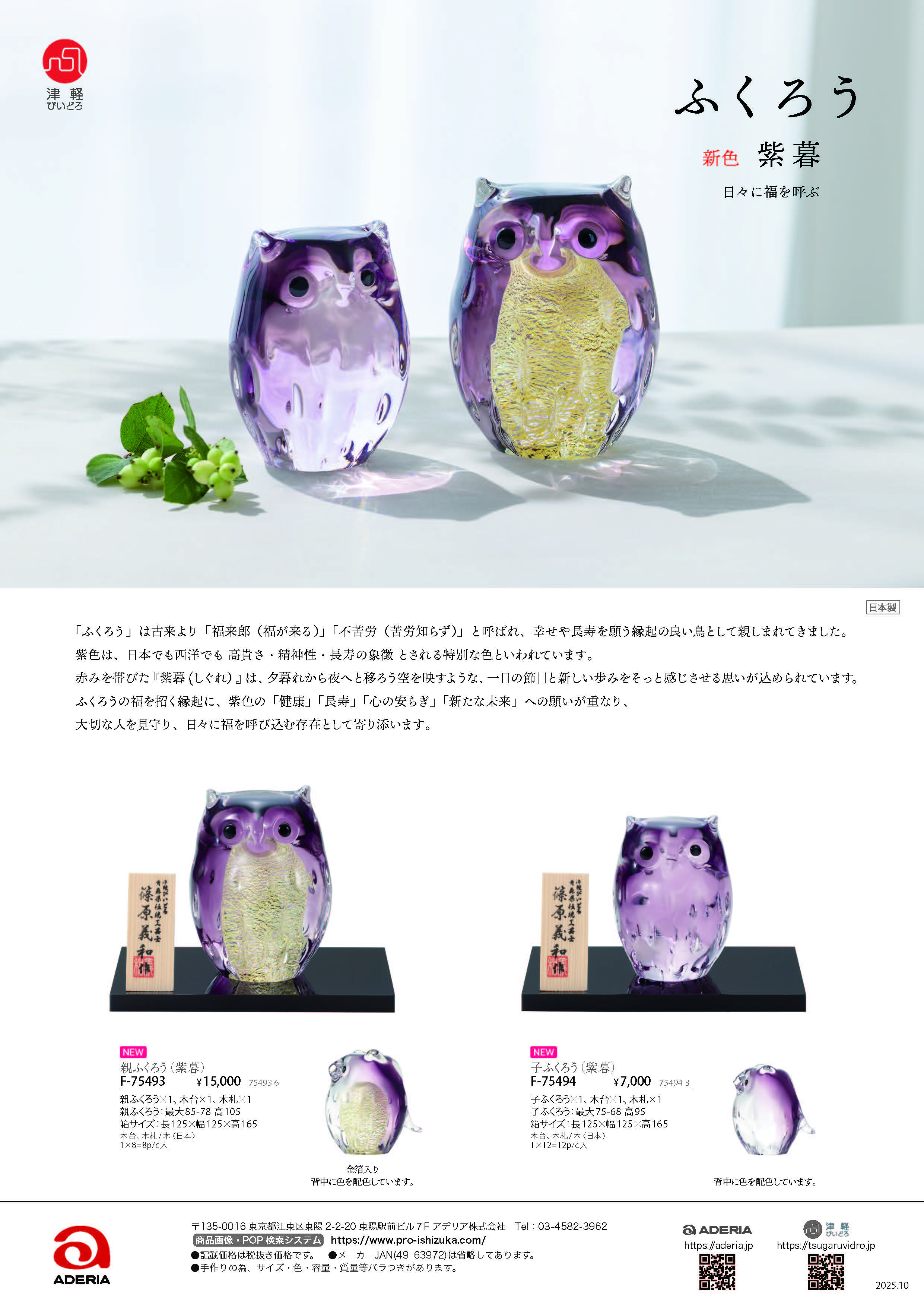 津軽びいどろ ふくろう 子ふくろう (紫暮)