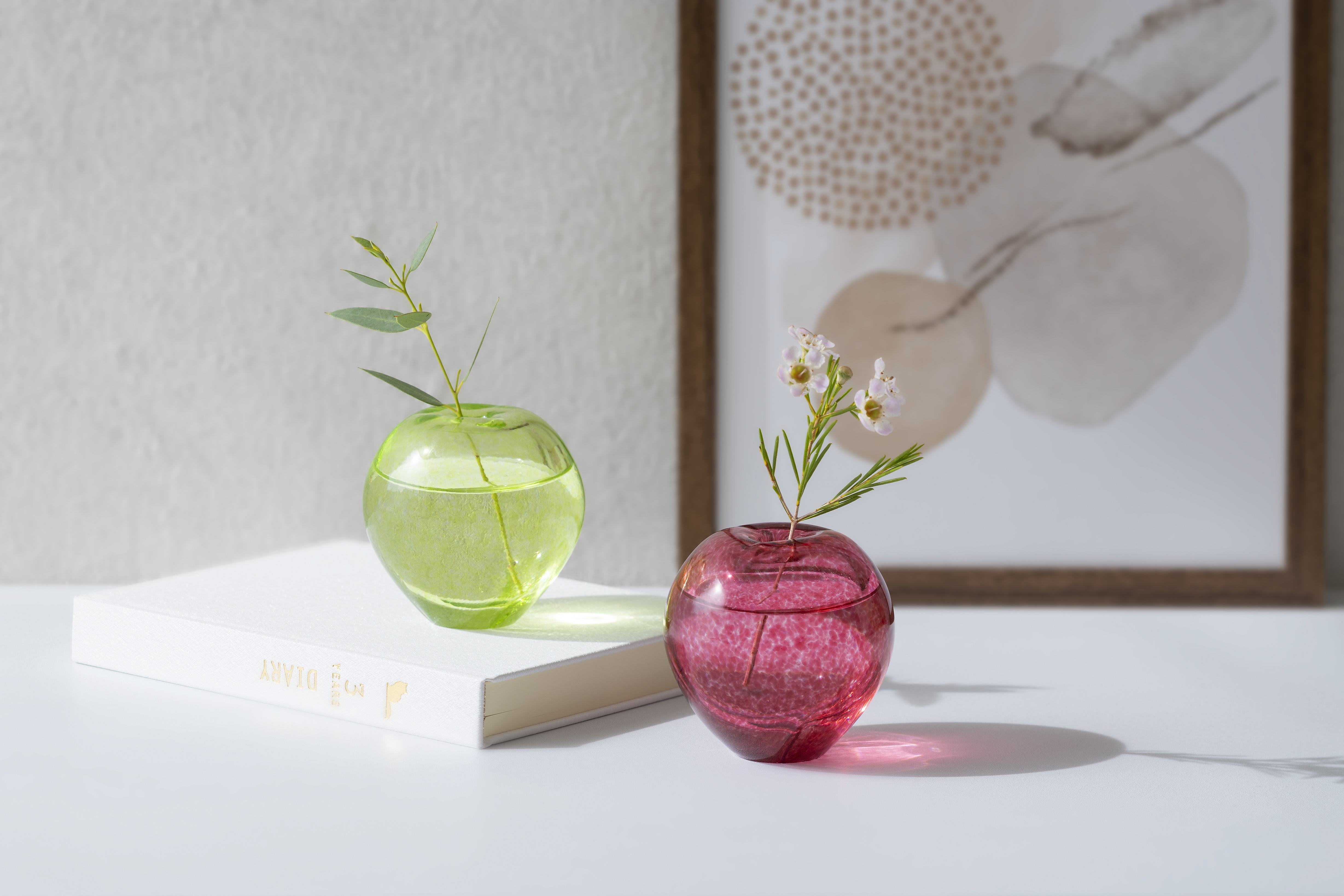 青森を代表する果実「りんご」を津軽びいどろ職人が表現した、ころんと可愛らしい一輪挿しです。