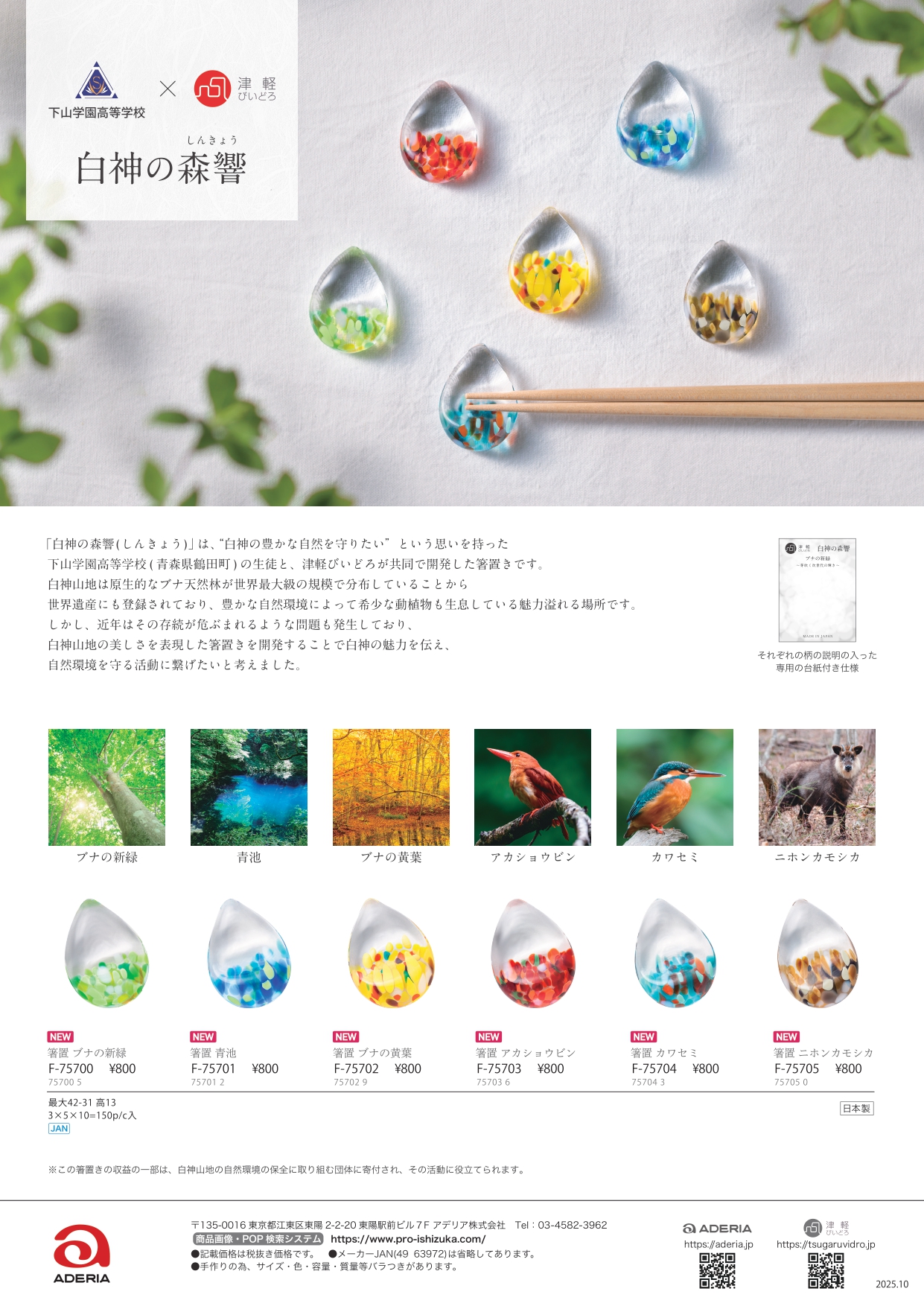 その美しさを表現した箸置きを開発することで白神の魅力を伝え、