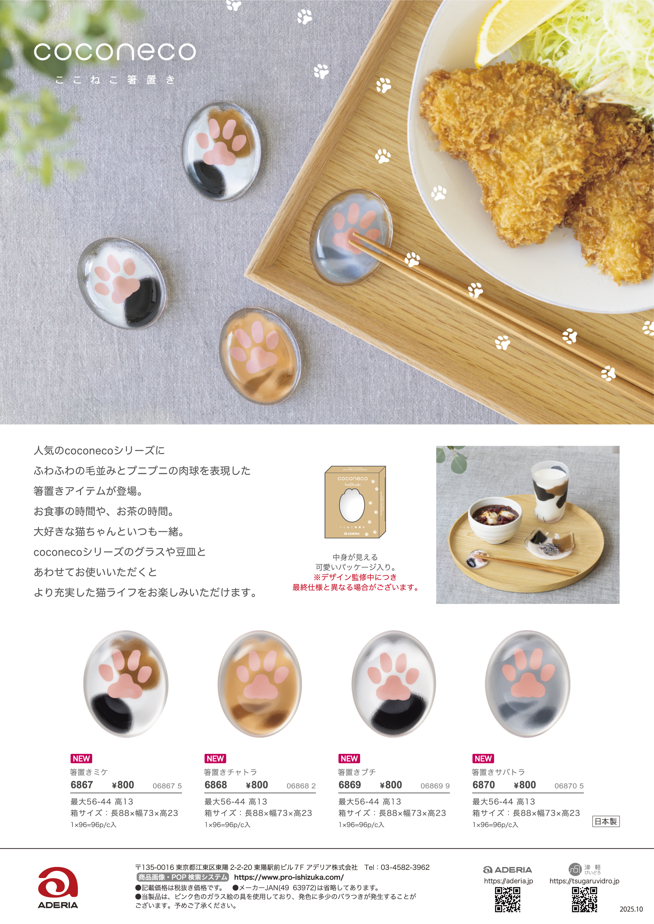 人気のcoconecoシリーズに、ふわふわ毛並みとプニプニの肉球を表現した箸置きアイテムが登場!