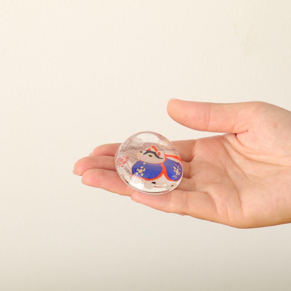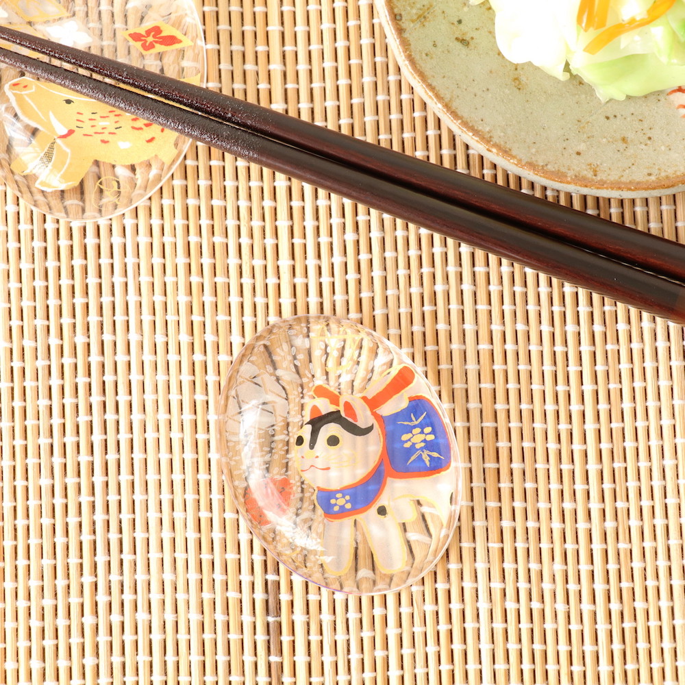 こうした習俗を母体に誕生したとされる「郷土玩具」を、描写し硝子食器にうつした「めでた干支」を